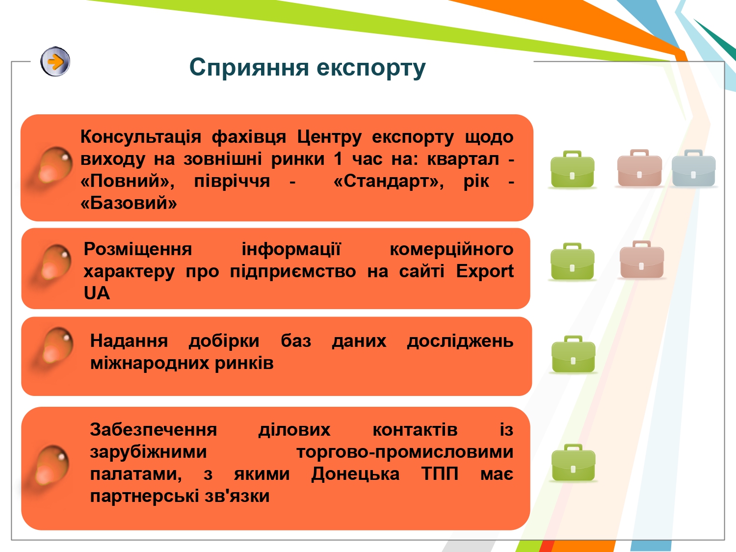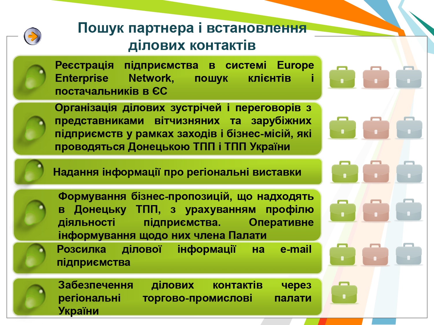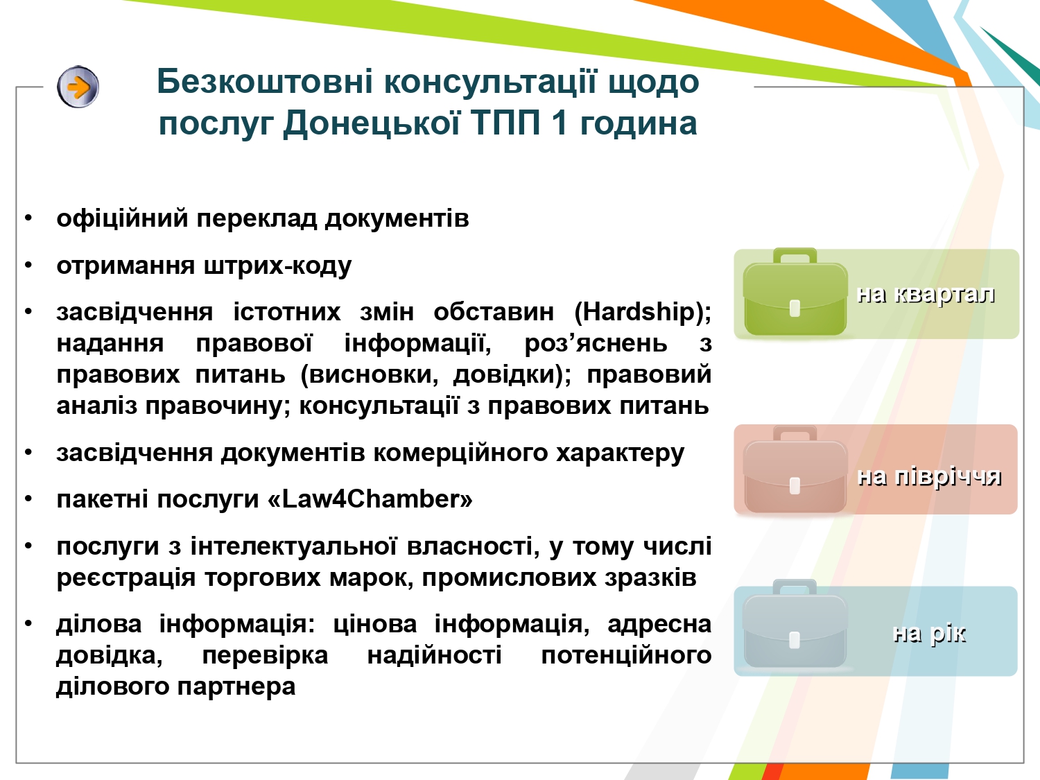 - стаючи членом Донецької ТПП підприємство отримує послуги за п'ятьма напрямками: