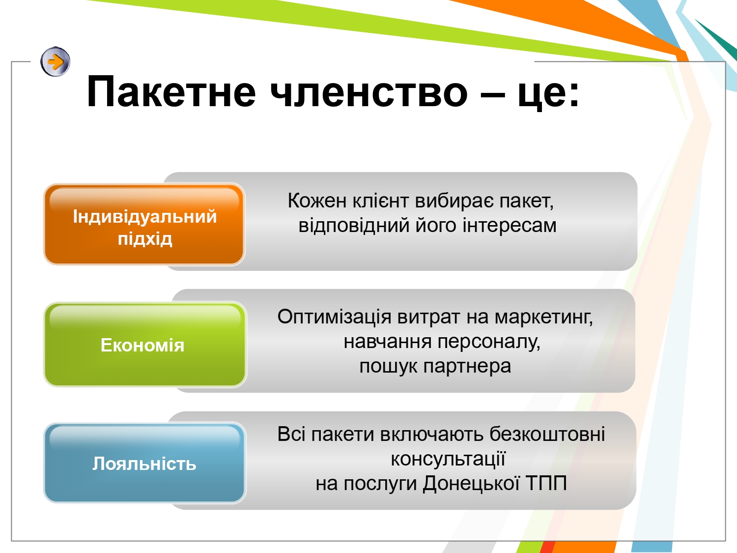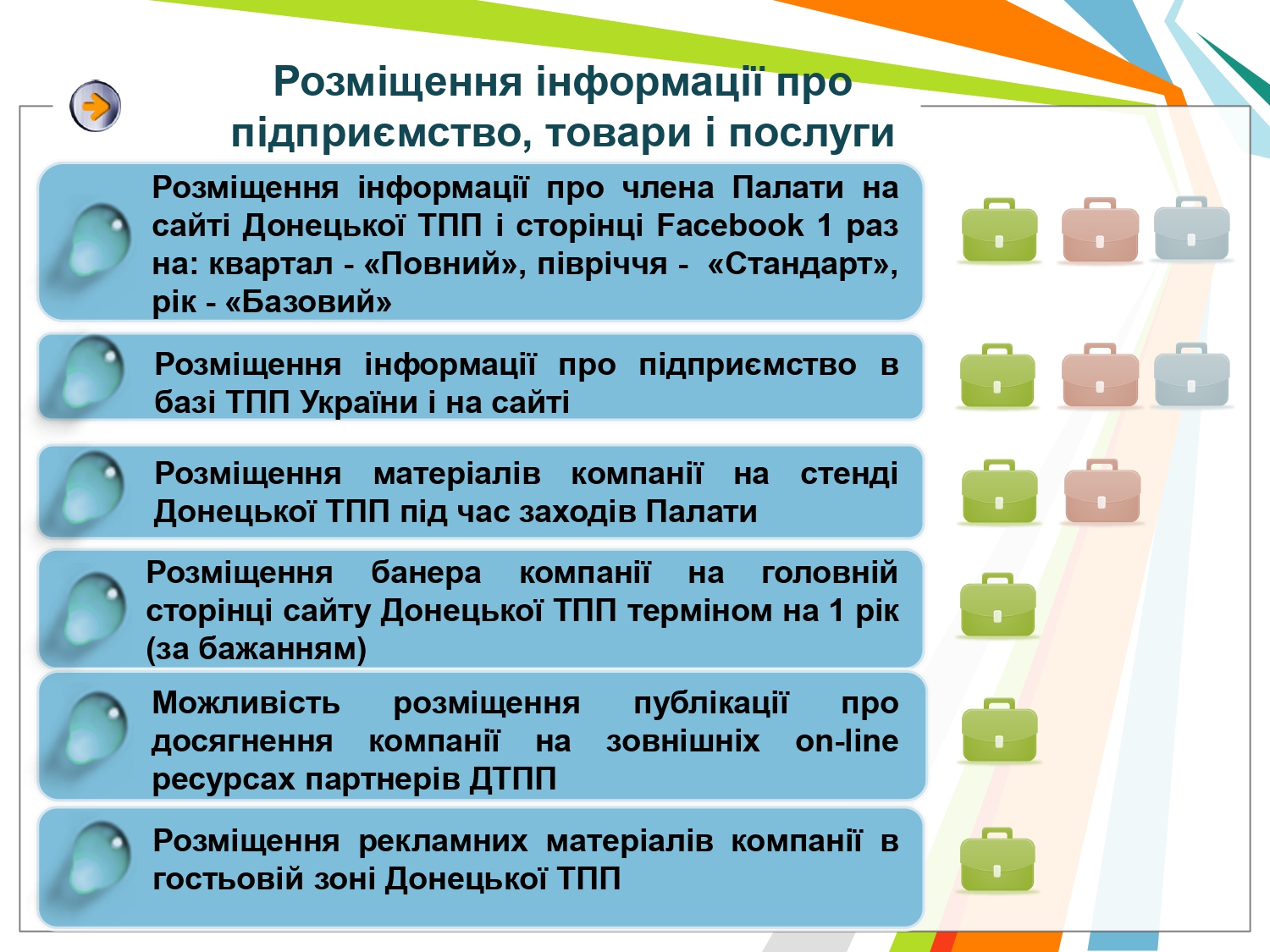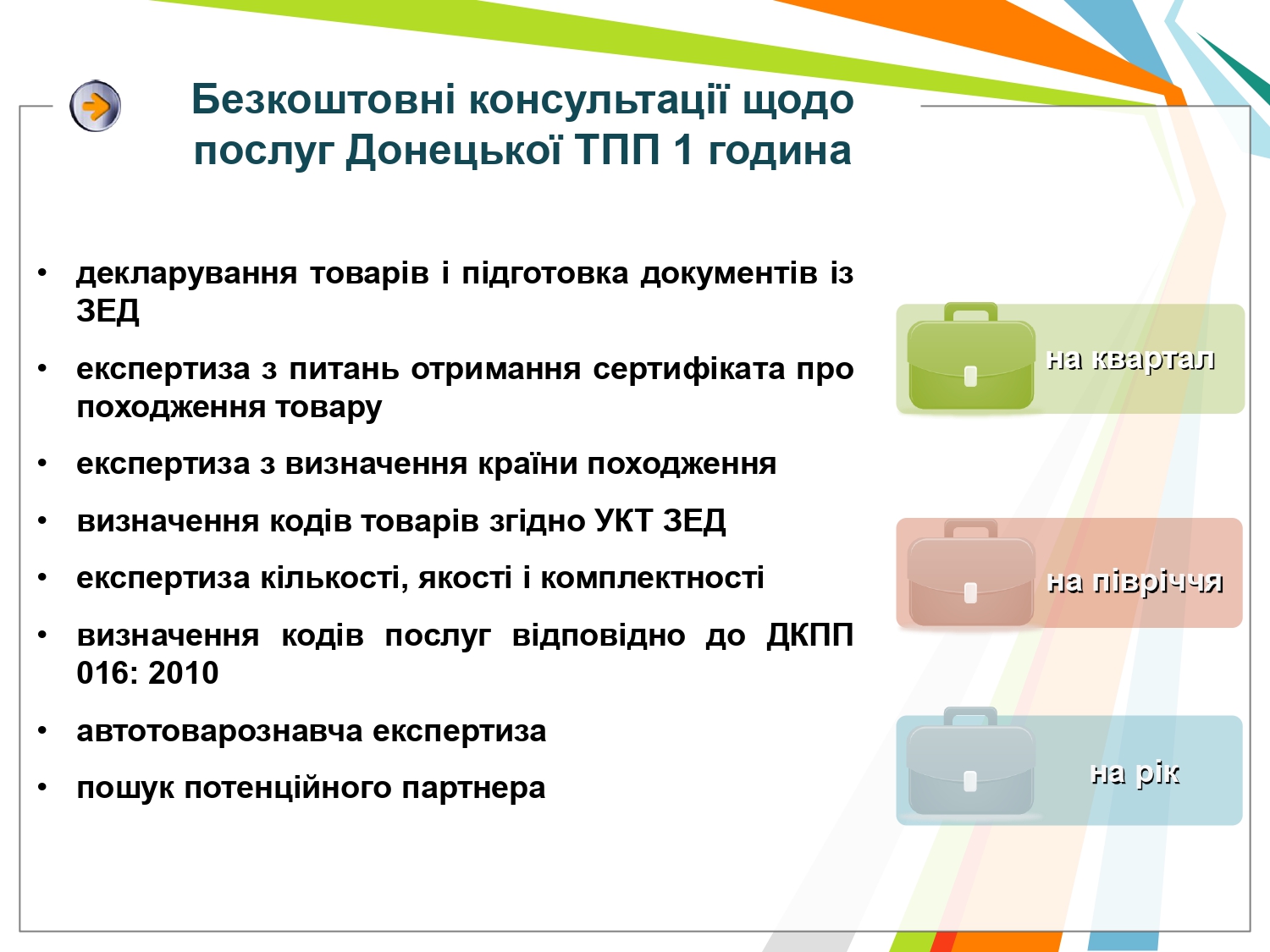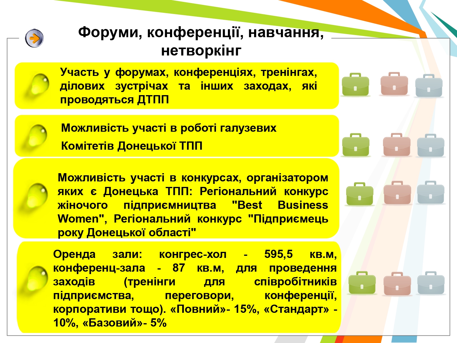 - стаючи членом Донецької ТПП підприємство отримує послуги за п'ятьма напрямками: