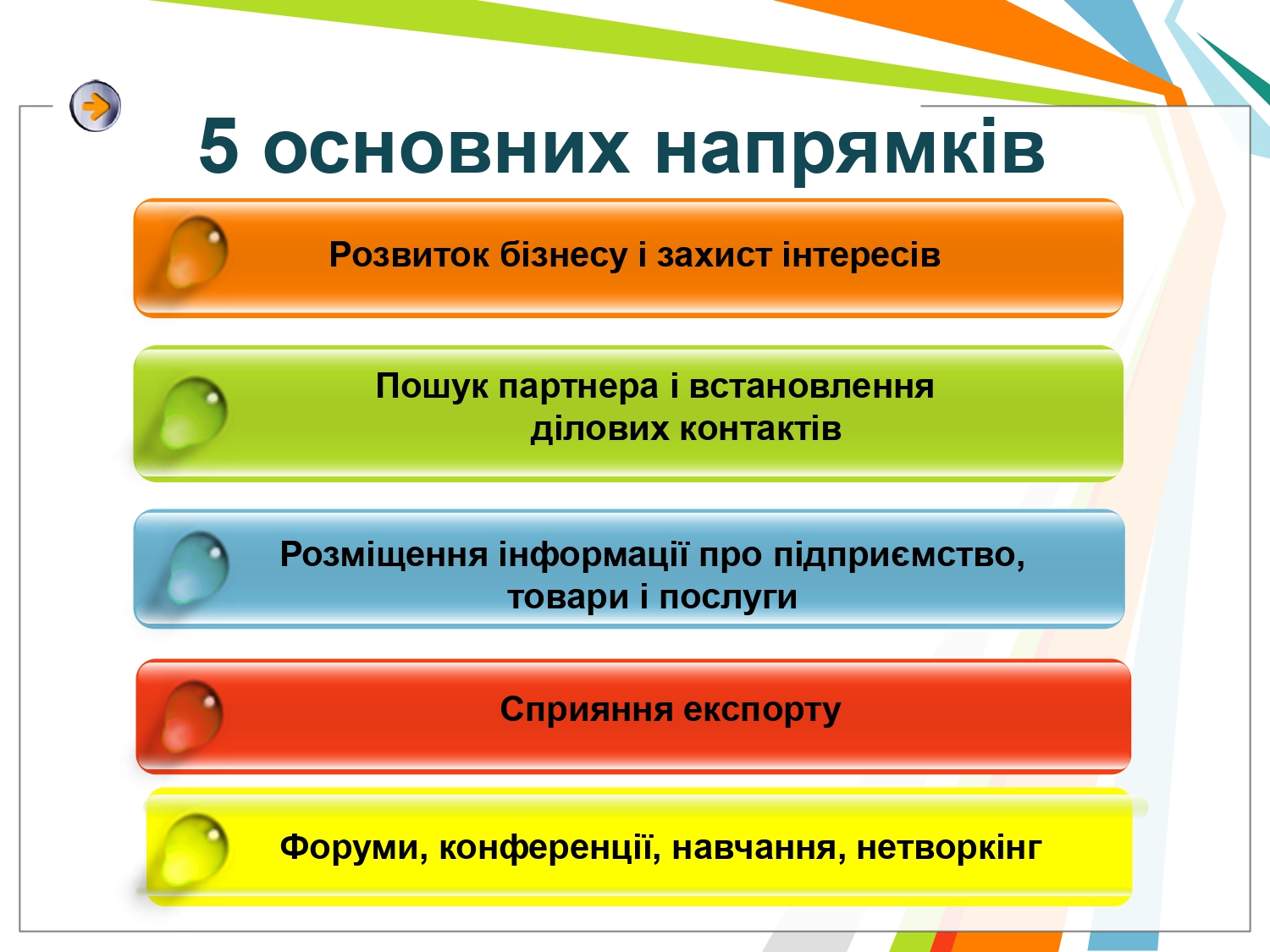 - ми представляємо інтереси підприємств - членів Палати - на зовнішньому і внутрішньому ринках, допомагаючи розширювати мережу їх бізнес контактів.